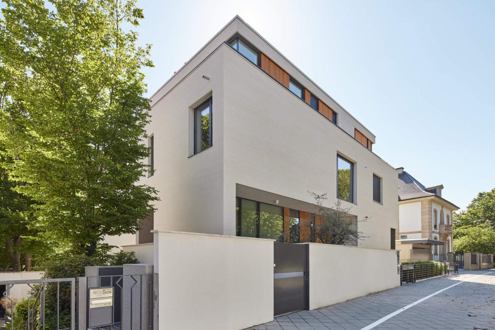 Wir bekommen einen Eindruck von den großzügigen Räumen in Bezug auf den Garten. Eine großzügige Maisonette, eine Etagenwohnung und ein Penthouse sind die Nutzungseinheiten des dreigeschossigen Wohnhauses.