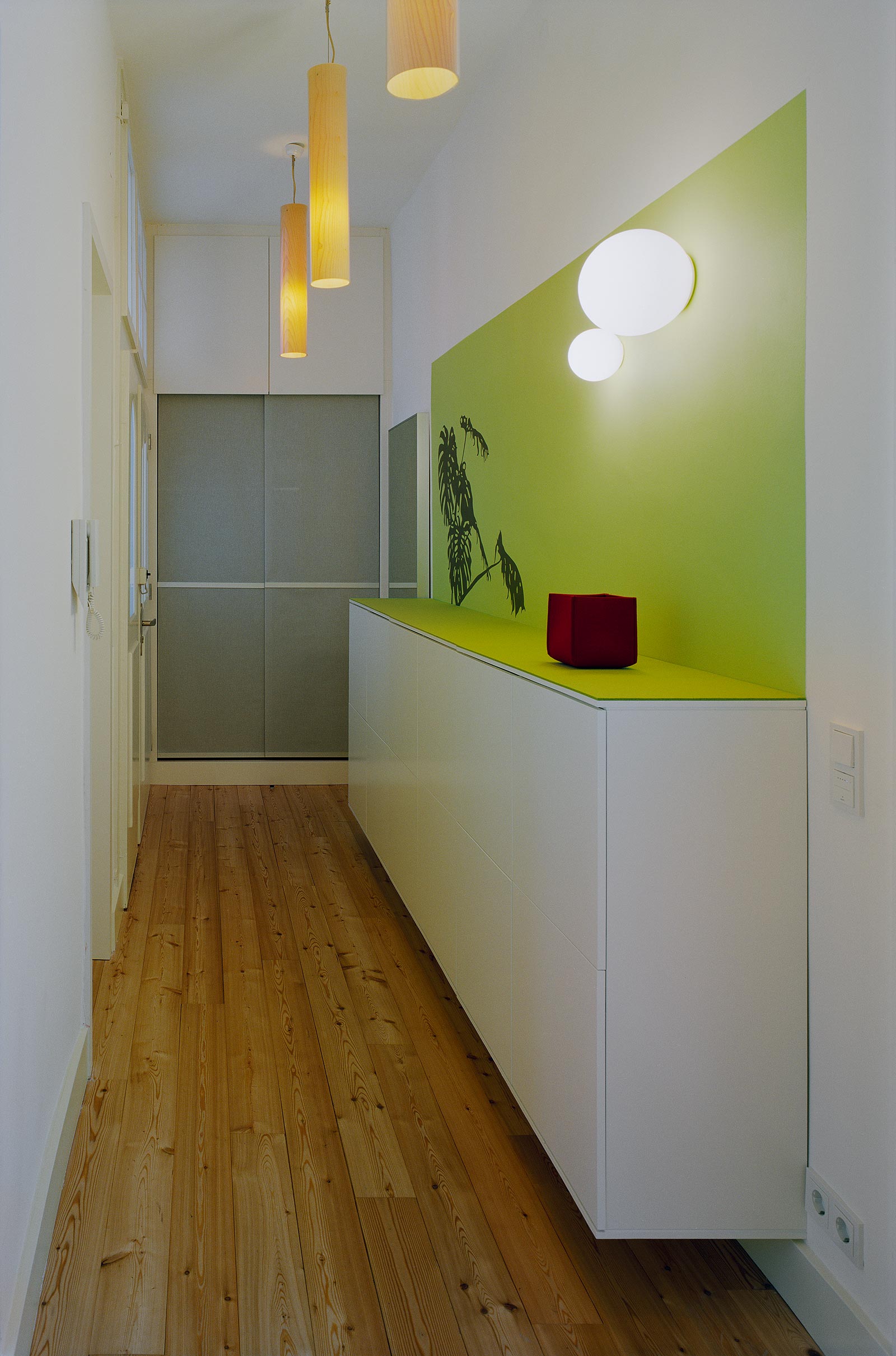 EINGANGSFLUR, GARDEROBE MIT TRANSLUZENTEN SCHIEBEELEMENTEN,