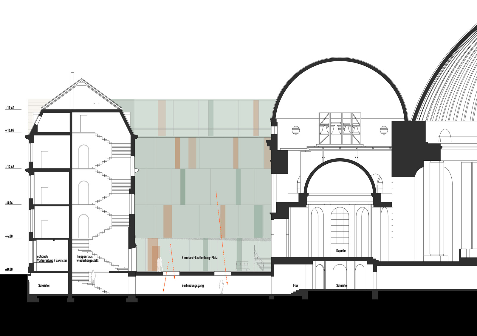 Im Zentrum des Entwurfs steht die Schaffung eines lebendigen Kathedralplatzes zwischen Kirche und Bernhard-Lichtenberg-Haus, über den sich die Menschen ungezwungen sowohl kirchlichen als auch weltlichen Angeboten und Räumlichkeiten nähern können. Dabei hat die Offenheit und Flexibilität der neu geschaffenen Räume einen hohen Stellenwert.