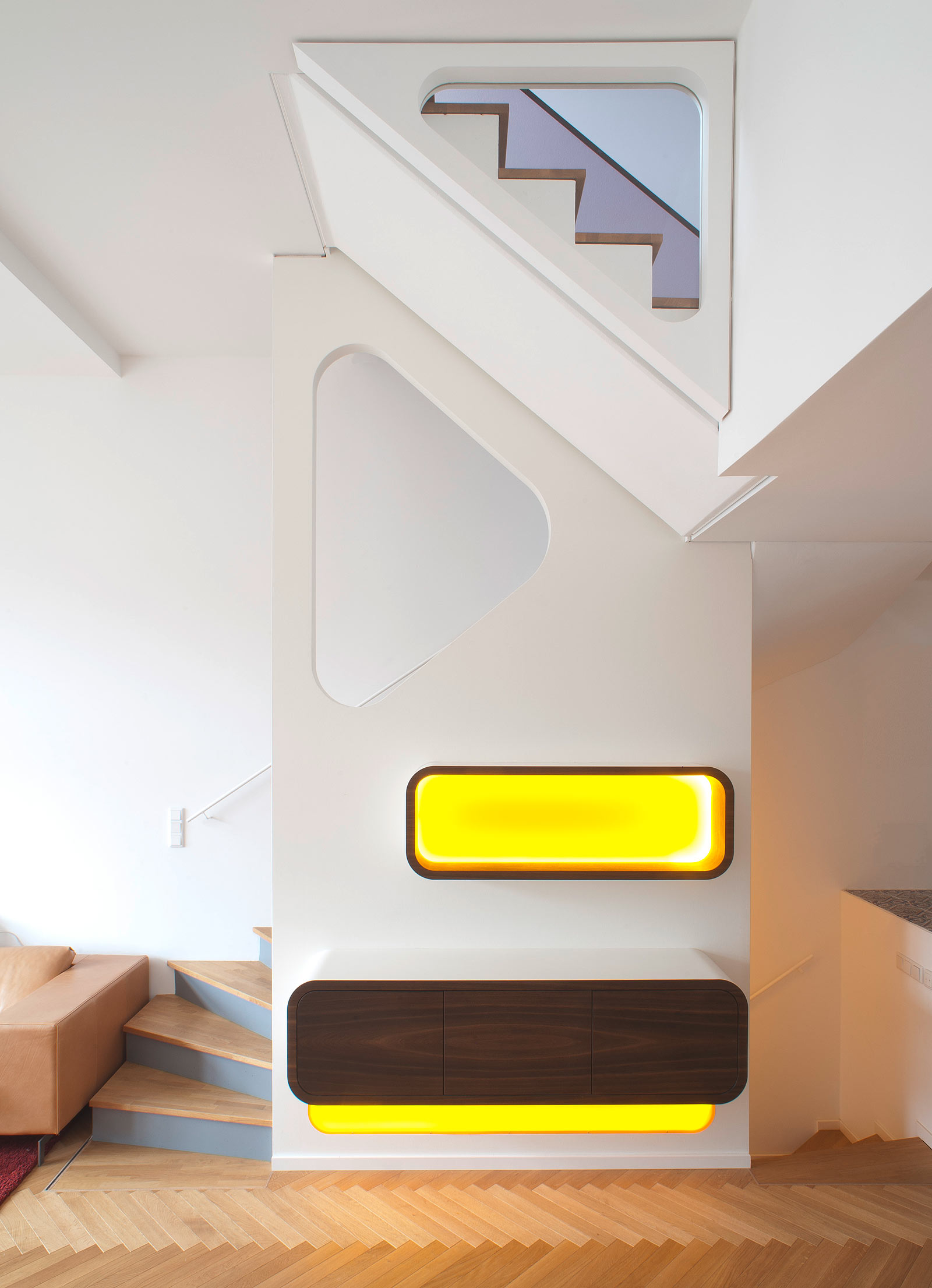 Durch den gekonnten Einsatz von LICHT, SINNLICHEN MATERIALIEN und FARBE strahlen die Projekte eine menschliche Wärme aus. FLIEßENDE RÄUME gepaart mit EXPERIMENTELLEN MULTIFUNKTIONALEN Einbauten schaffen optimale Grundrisse in Bezug auf Raumzusammenhänge, Lichtführung und Flächenausnutzung. Die SKULPTURALE Ausarbeitung der raumgliedernden Elemente wird je nach Bauaufgabe umgesetzt: sowohl frei und SPIELERISCH mit METAPHERN als auch schlicht und reduziert.