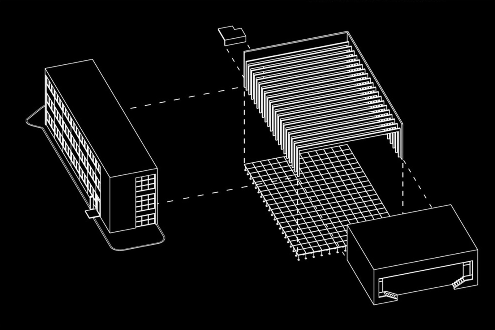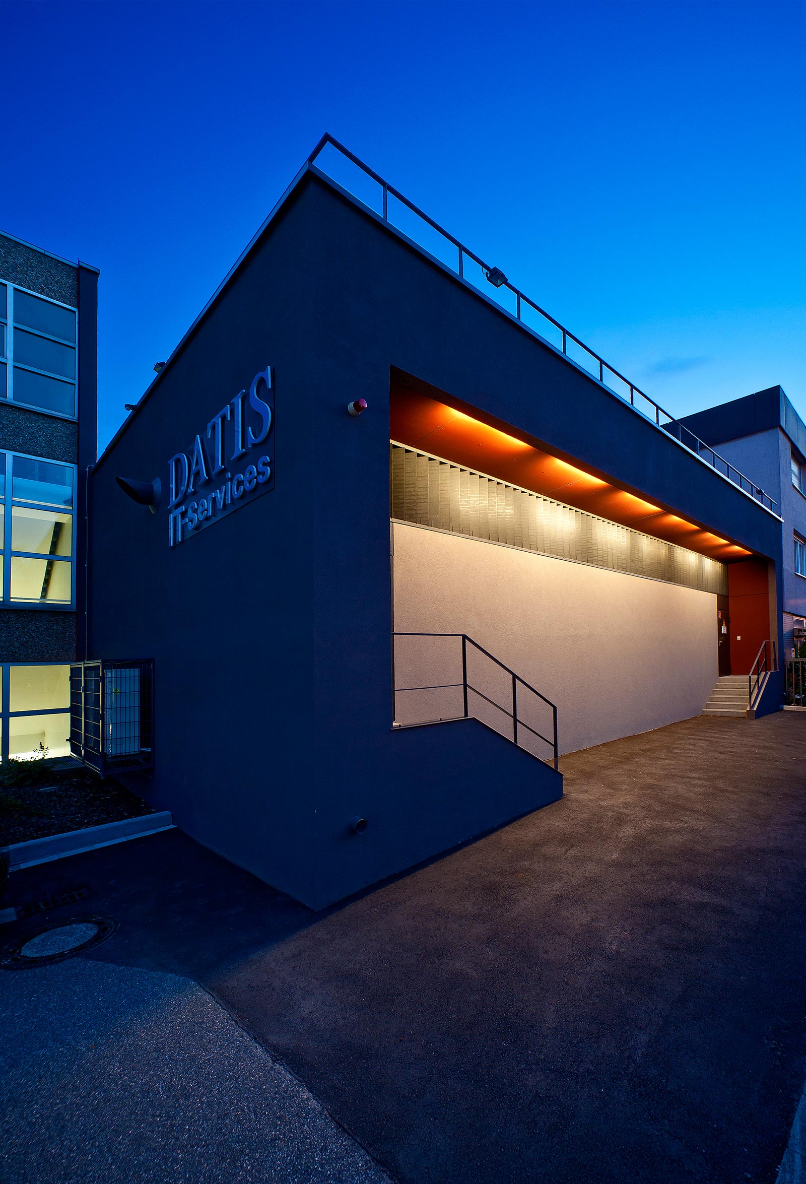 Bei der hochtechnischen Bauaufgabe eines Rechenzentrums wird die Architektur reine, fensterlose Hülle um eine großen, elektronischen Maschinenpark. Jede Gestaltung muss sich dieser klaren industriellen Logik unterordnen.