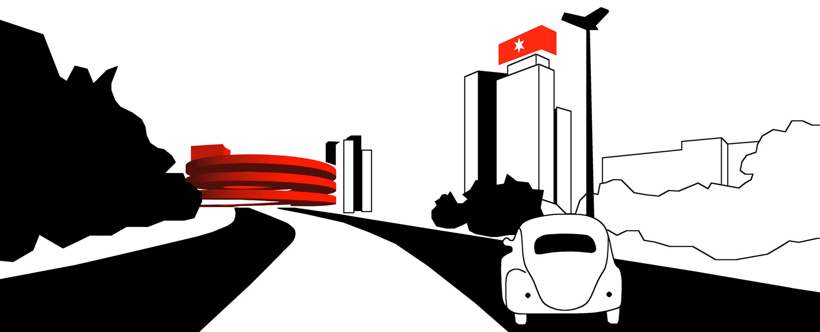 Ihre monofunktionalen Bauwerke prägen das Bild, unsere Landschaften und Städte, vor allem am Hallenser Riebeckplatz. Deshalb greift „v=0“ direkt auf der Ebene des Verkehrs ein: Das Problem – 100.000 Fahrzeuge pro Tag am Riebeckplatz – wird zum Potenzial für Ort und Stadt. Das nicht vorgesehene Anhalten wird zum zentralen Element einer inszenierten Verkehrslandschaft, die den rein technischen Knoten und sein Umfeld überformt.